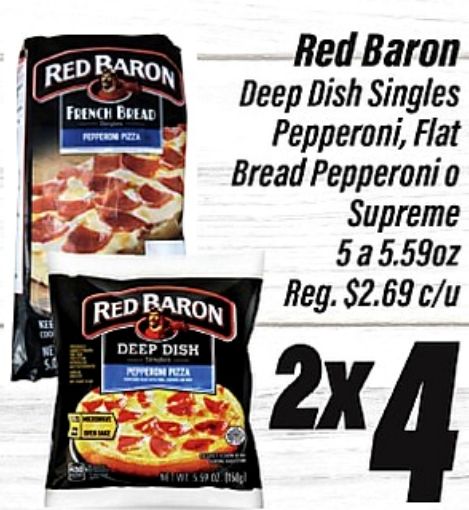 baron french bread deep dish singles pepperoni flat merila! supreme $c/u
