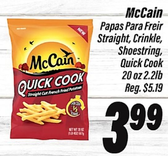 mccain quick cook straight french fried potatoes timi ccain papas freir crinkle, shoestring,