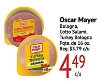 cotto salami oscer mayer turkey bologna original oscar salami, pqte reg. $c/u