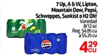 a&w, lipton, mountain dew, pepsi, schweppes, sunkist hoh! variedad /reg