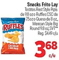 snacks frito tostitos rest style pate ruffles queso mexican round svt⭑* chediar $c/u