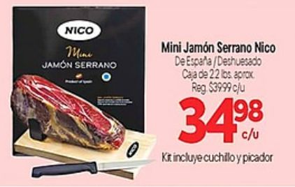 nico mine jamon serrano mini jamón españa/deshuesado caja aprox $c/u incluye cuchillo picador