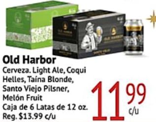 harbor cerveza light coqui helles, taína blonde, santo viejo pilsner, melón fruit caja latas reg. $c/u