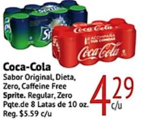 coca-cola sabor original dieta, zero, caffeine free sprite regular, zero pqte.de latas reg. $c/u