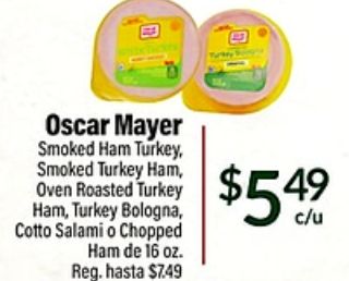 oscar mayer smoked turkey ham, oven roasted bologna, cotto salami chopped reg. $$c/u