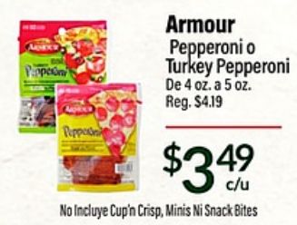 pappen ropposin armour pepperoni turkey reg. $$no incluye cup'n crisp minis snack bites