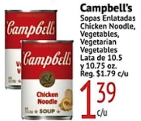 campbell campbell's sopas enlatadas chicken noodle vegetables, vegetarian vegetables lata soup reg. $c/u
