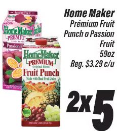 home maker prémium fruit premiu punch passion $c/u homemaker premium made with real juice