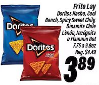 doritos frito nacho cool ranch, spicy sweet chily dinamita chile limón, incógnita flammin
