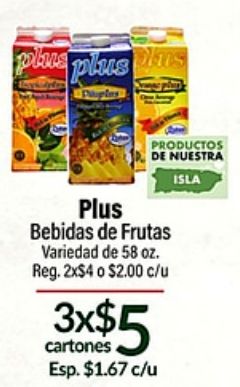 plus productos isla bebidas frutas variedad reg. $c/u x$cartones esp.