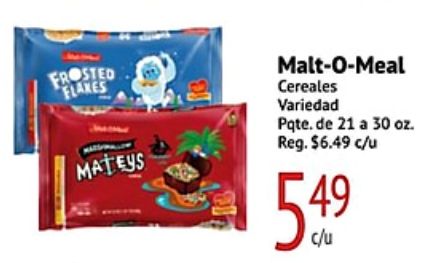 frosted flakes malt-o-meal cereales variedad pqte mateus reg. $c/u