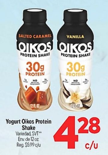 salted caramel vanilla oikos protein shake fyogurt variedad svt" reg. $c/u