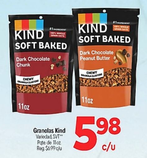 kind grain soft baked dark chocolate chunk chewy granola clusters granolas variedad svt" pate $c/u peanut butter