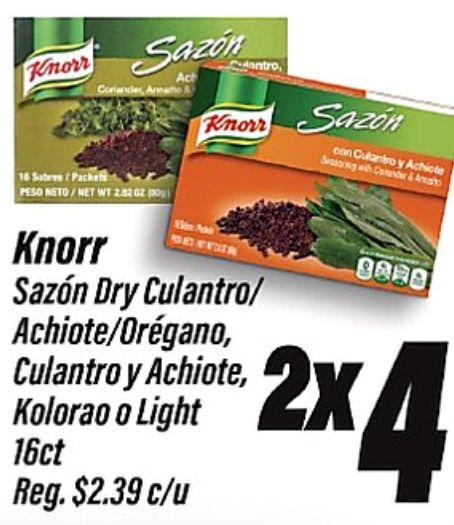 knorr sazon contander armano& antro, culantro achicte song with career amato sabres/packe peso neto/net sazón culantro/ achiote/orégano, achiote, kolorao light $c/u
