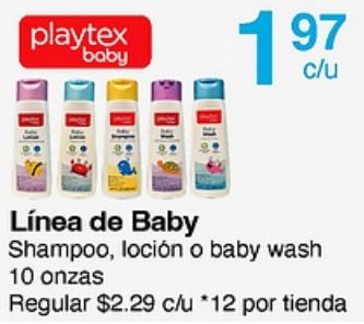 playtex baby línea shampoo loción wash onzas regular $c/u *por tienda