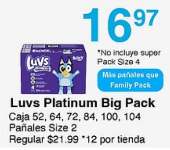luvs incluye super pack size paƱales family platinum caja regular $*por tienda