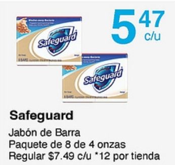 bard safeguard jabón barra paquete onzas regular $c/u *por tienda