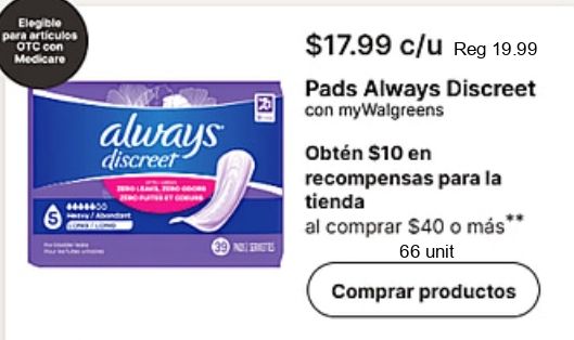 elegible articulos medicare always discreet $c/u pads mywalgreens obtén recompensas tienda comprar más** unit productos