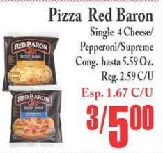 raron pizza baron single cheese/ pepperoni/supreme cong reg. redbaron esp.
