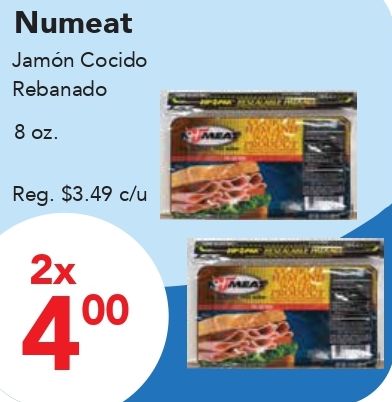 numeat jamón cocido rebanado reg. $c/u meat