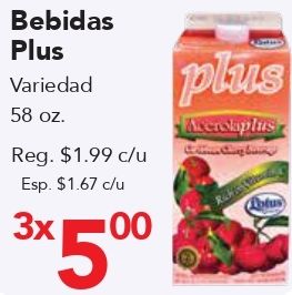 bebidas plus variedad reg. $c/u esp. acerolaplus
