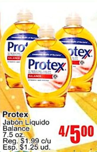 protex jabón liquido balance reg. $c/u esp. $ud.