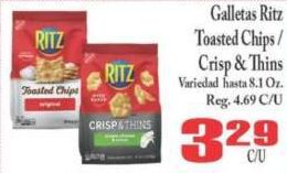 ritz toasted chips crispathins galletas chips/ crisp thins variedad reg.