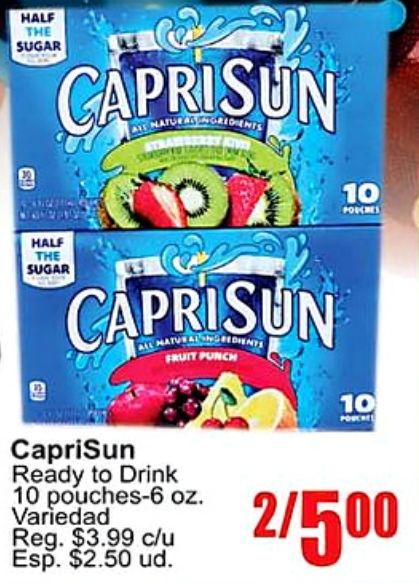 half sugar caprisun naturas ingredients pouches fruit punch ready drink variedad reg. $c/u esp. $ud.