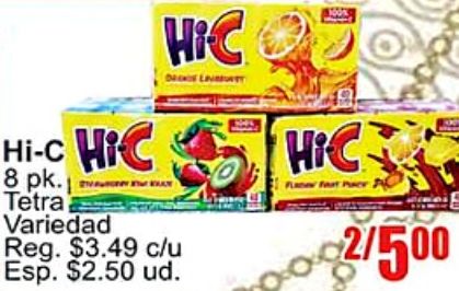 hi-c tetra variedad reg. $c/u esp. $ud.