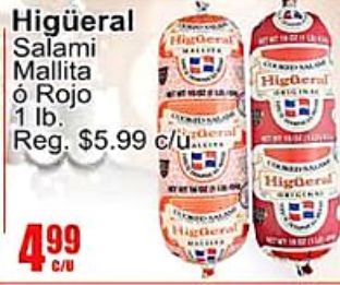 higüeral salami mallita histgeral rojo deral reg. $c/u...... higher geral