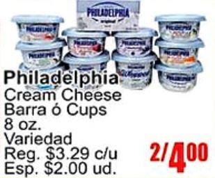 philadelphia cream cheese barra cups variedad reg. $c/u /esp. $ud.