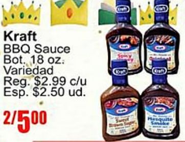 kraft sauce variedad reg. $c/u esp. $ud. /hesquite smake