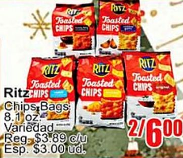 toasted chips ritz ritzchips bags variedad $clu esp. $ud.