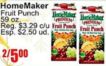 homemaker fruit punch premium reg. $c/u esp. $ud. /premium