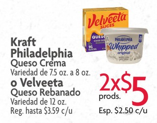 Kraft Philadelphia Queso Crema Variedad de 7.5 oz. a 8 oz. o Velveeta Queso Rebanado Variedad de 12 oz.