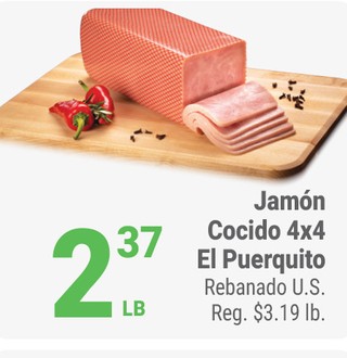 Jamón Cocido 4x4 El Puerquito Rebanado U.S.