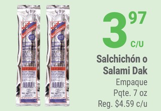Salchichón o Salami Dak Empaque Pqte 7 oz