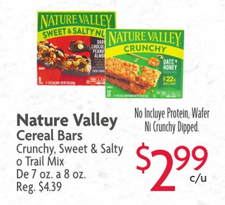 Nature Valley Cereal Bars Crunchy, Sweet & Salty o Trail Mix De 7 oz. a 8 oz.