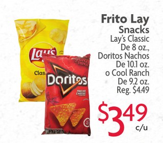 Frito Lay Snack Lay's Classic De 8oz. Doritos Nachos De 10.1oz o Cool Ranch De 9.2oz