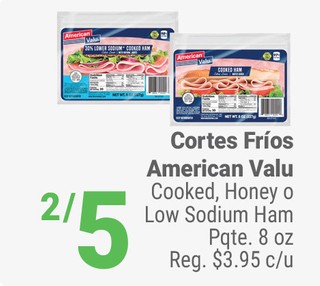 Cortes Frios American Valu Cooked, Honey o Low Sodium Ham Pqte 8oz