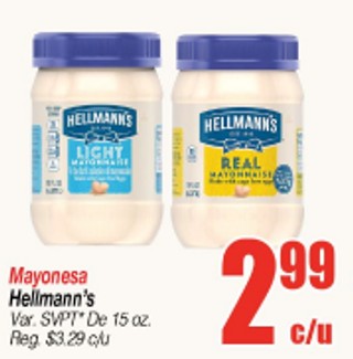 Mayonesa hellmann´s var. svpt* de 15 oz.