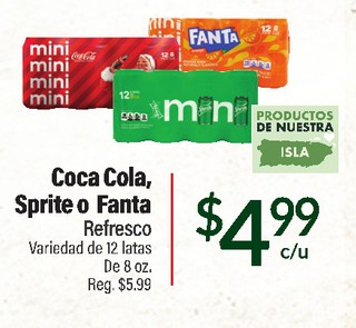 Coca Cola, Sprite o Fanta Refresco Variedad de 12 latas De 8 oz.