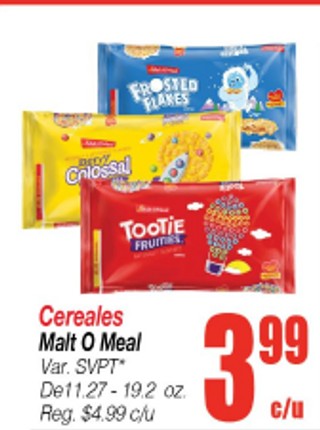 Cereales Malt O Meal Var. SVPT* De11.27-19.2oz