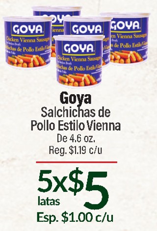 GOYA SALCHICHA DE POLLO ESTILO VIENNA De 4.6 oz Esp. $1.00 C/U