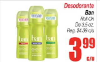 Desodorante Ban Roll On De 3.5 oz