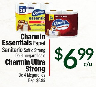 CHARMIN ESSENTIALS Papel Sanitario Soft o Strong De 9 megarollos o CHARMIN ULTRA STRONG De 4 Megarollos