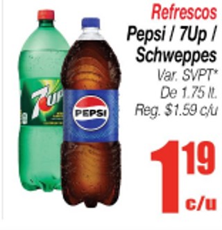 Refrescos pepsi / 7up/ schweppes var. svpt* de 1.75 lt.