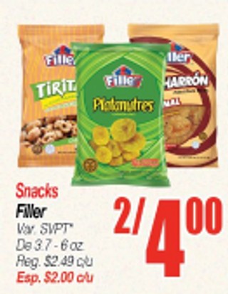 Snacks filler var. svpt* de 3.7 - 6 oz.