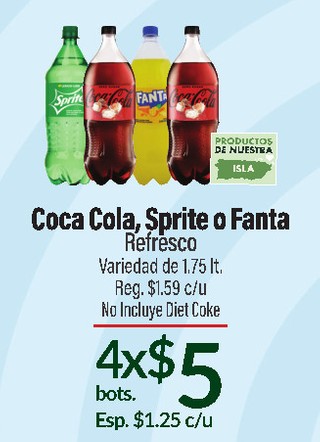 Coca Cola, Sprite o Fanta Refresco Variedad de 1.75 lt.