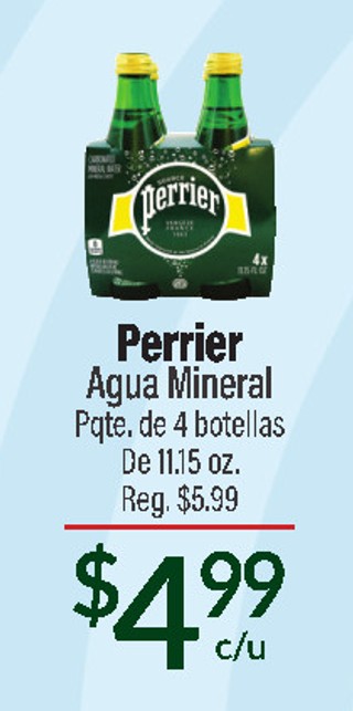 Perrier Agua Mineral Pqte. de 4 Botellas De 11.15 oz.